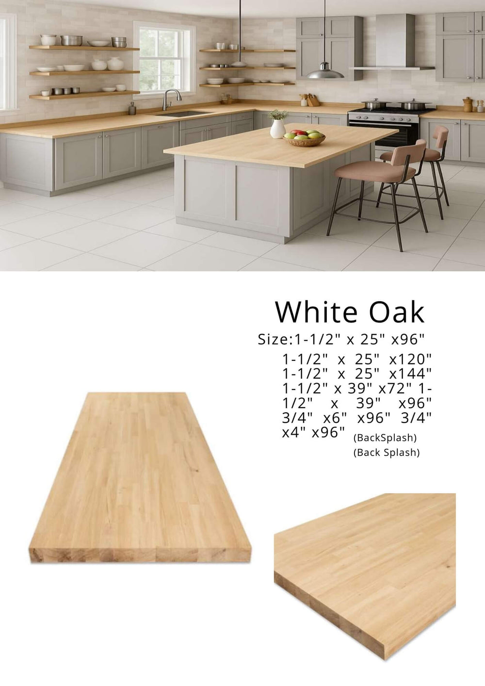 With pre-cut sizes designed for modern kitchens, GrayCoreFloors makes fitting your new butcher block easy. Choose from widths of 25″ or 39″ and lengths up to 144″ (12 feet), allowing you to create expansive, seamless kitchen islands with minimal waste.
