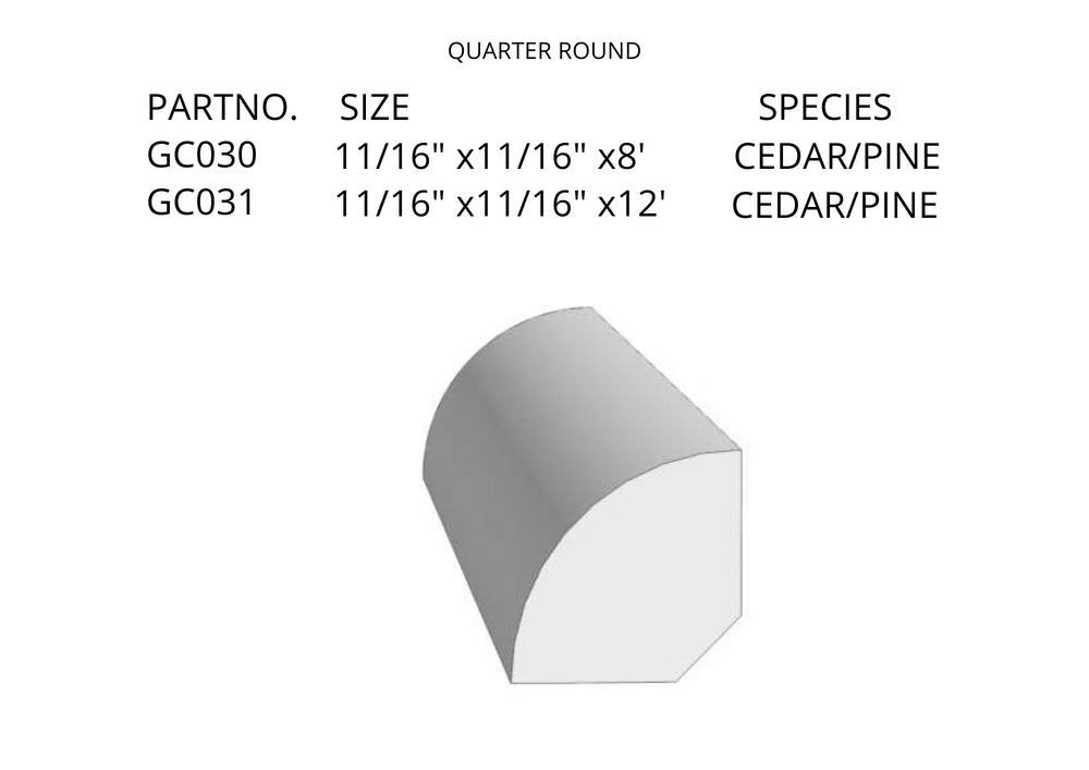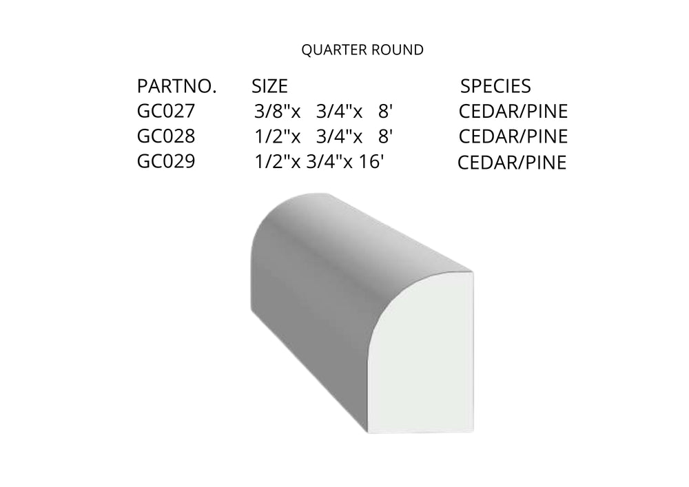 | Quarter Round (8ft) | 11/16" x 11/16" x 8' | 3,080 |