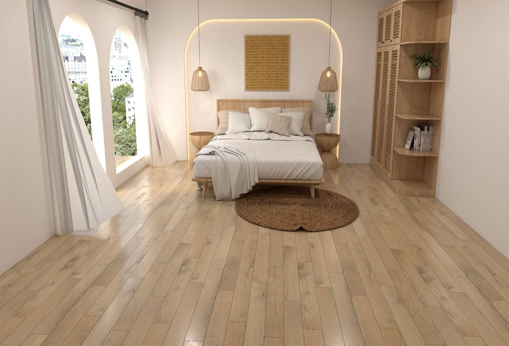 Heemo Collection flooring features a durable 5.0mm thickness with a 20 mil wear layer, ensuring long-lasting performance in high-traffic areas. Equipped with Unilin Click technology, it offers secure, easy installation without the need for adhesives. The deep embossed texture enhances the natural wood look and feel, while the UV coating provides excellent resistance to scratches, stains, and fading, maintaining beauty over time. Ideal for both residential and commercial spaces, this flooring delivers durability, style, and convenience in one expert-crafted solution.
